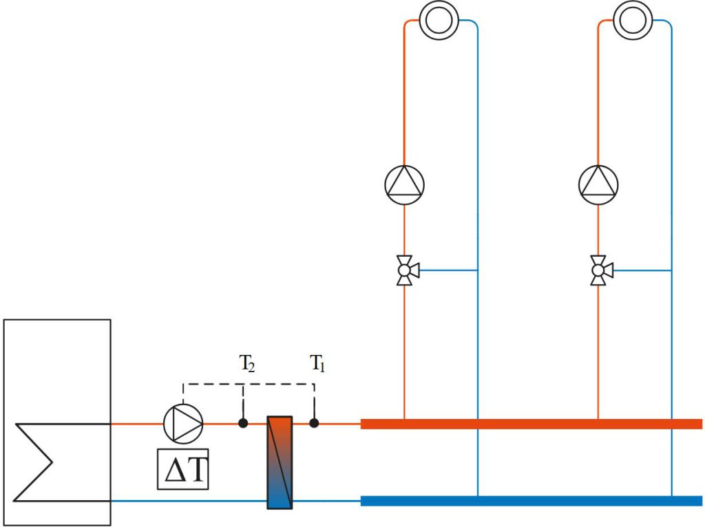 ⇒ Εξάλειψη του φαινομένου χαμηλού ΔT προσαγωγής-επιστροφής πρωτεύοντος κυκλώματος και αποδοτικότερη λειτουργία των αντλιών θερμότητας ή ψυκτών.
